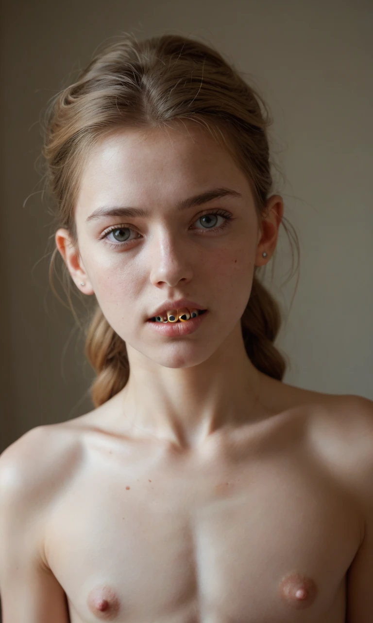 A hyper realistic fully nude 18 year teen topless, full fron...