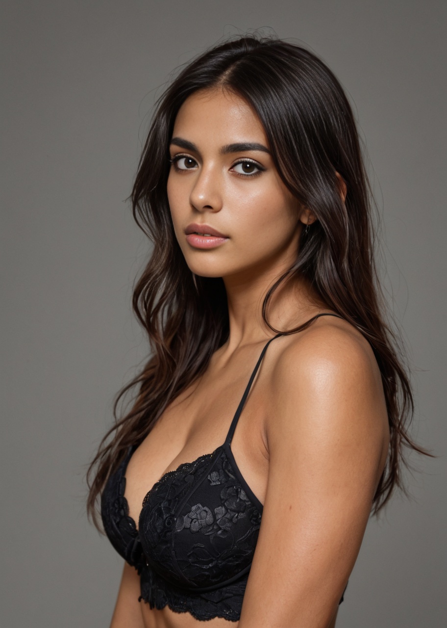 in the street, naked and tanned Latin woman in a black trans...