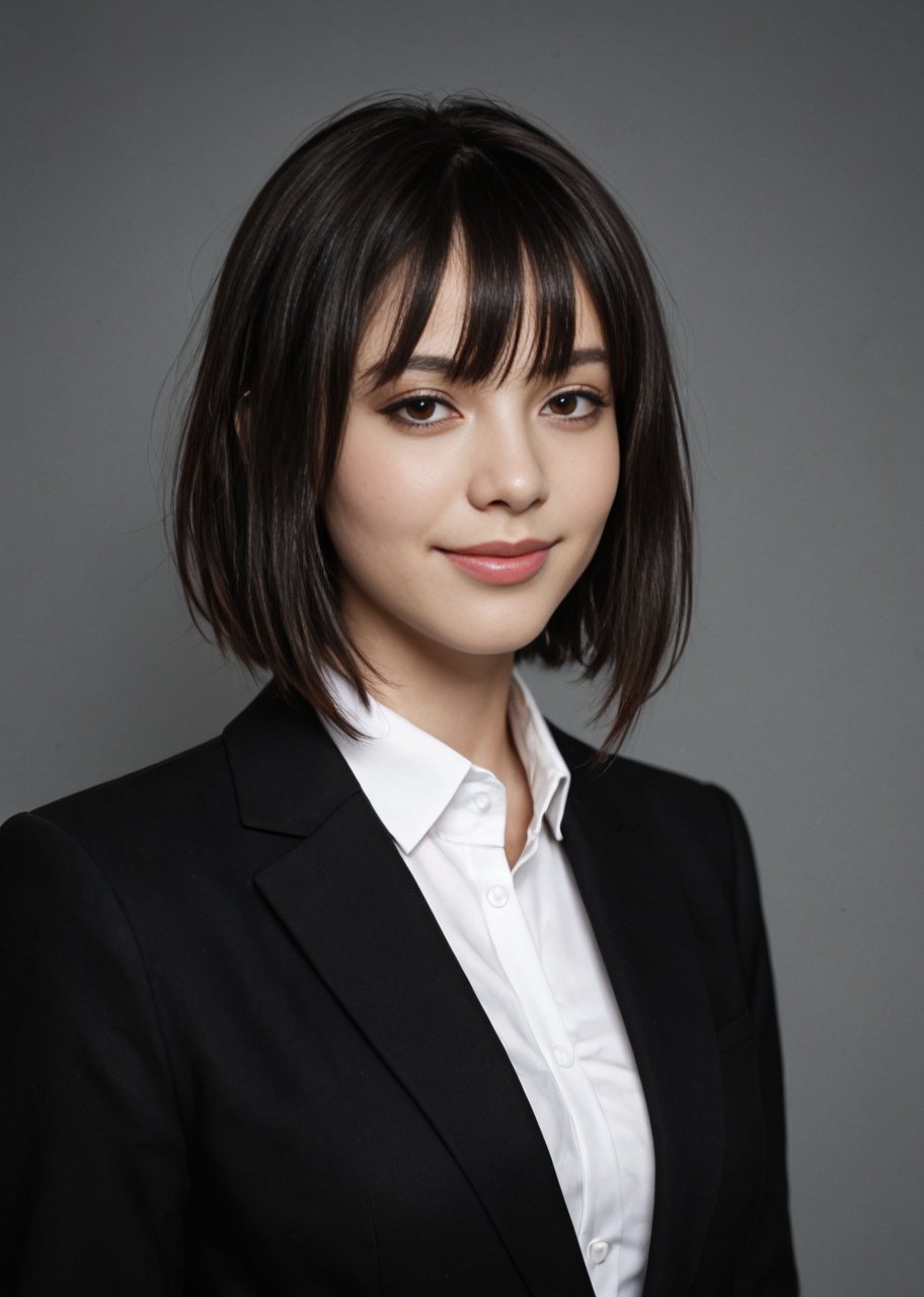 (Thai woman with straight semi-long hair), (dark black hair:...