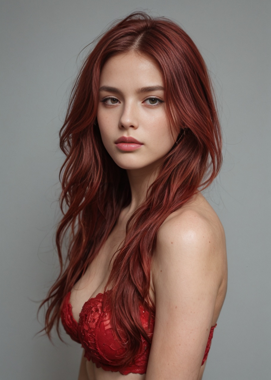 Photorealistic portrait of a beautiful young woman with a ch...