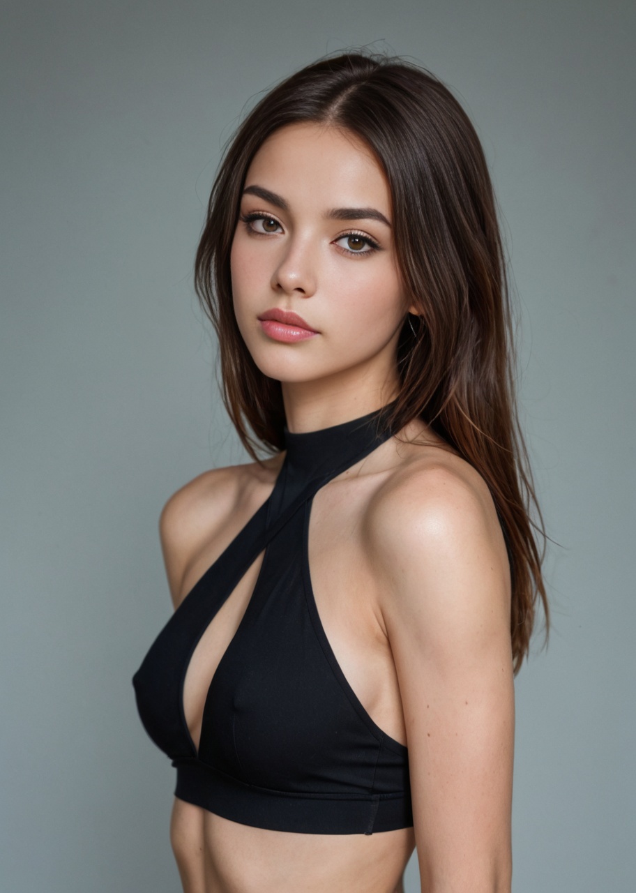 A hyper realistic fully nude 18 year teen topless, full fron...