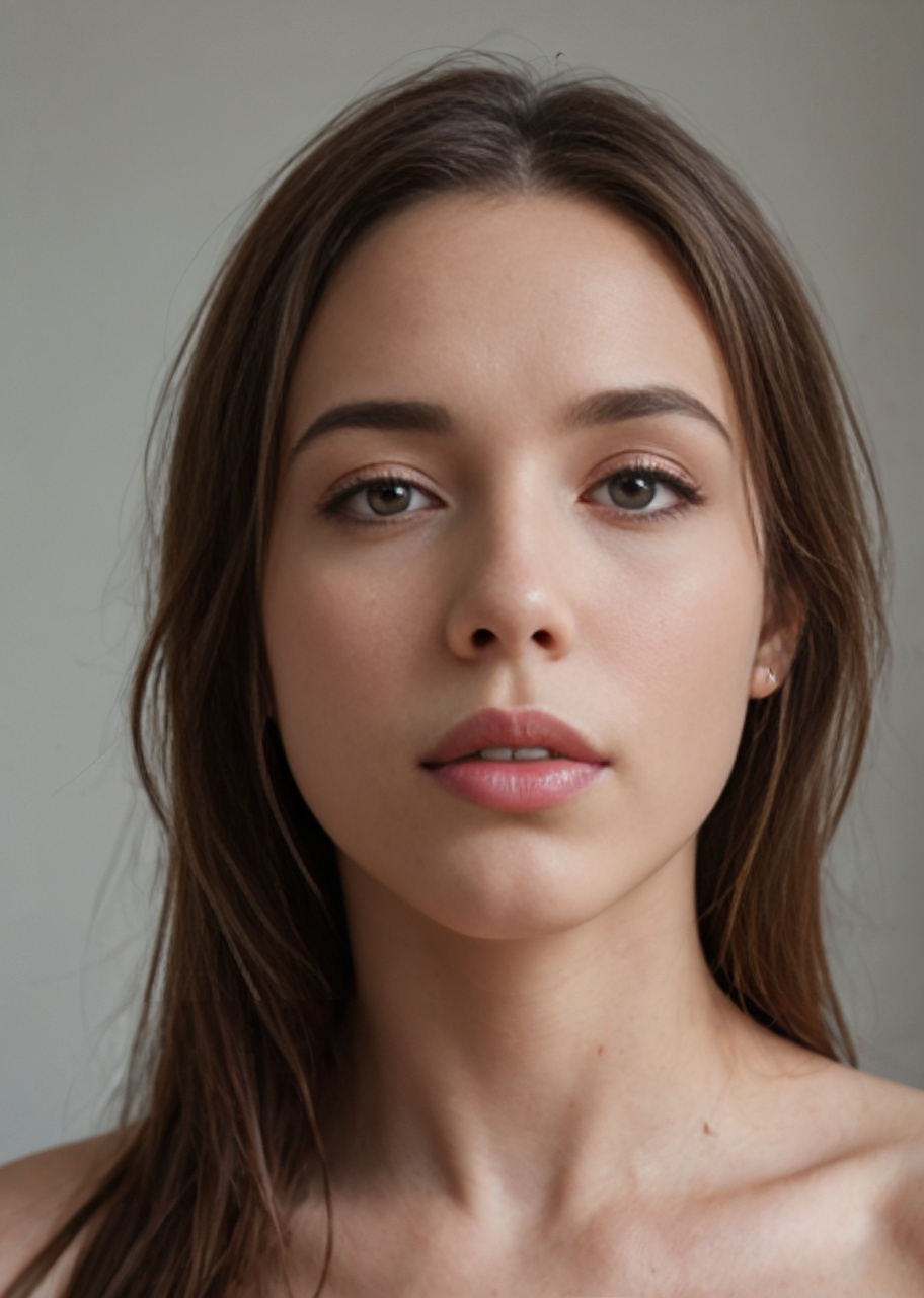 A chubby Caucasian girl with messy brown hair and collar nec...