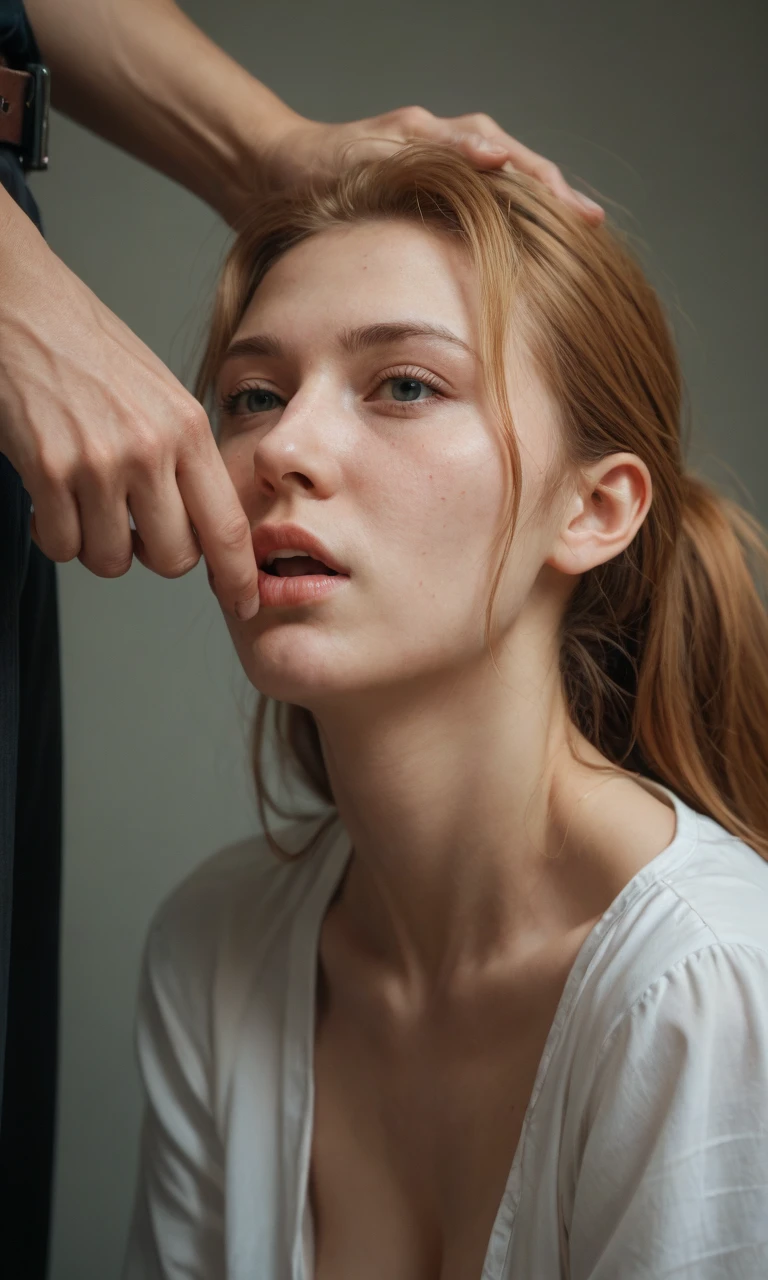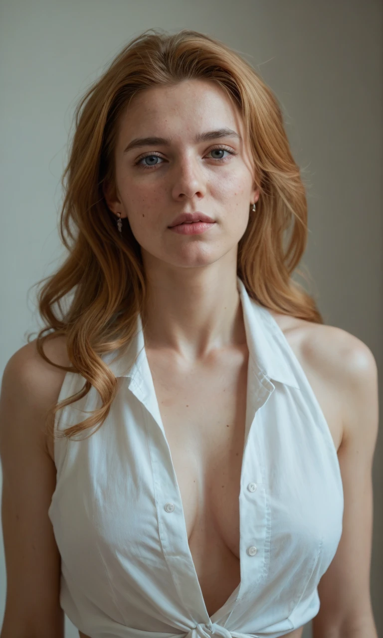 A Slim and blond woman, tits with dark areola, shape upwards...