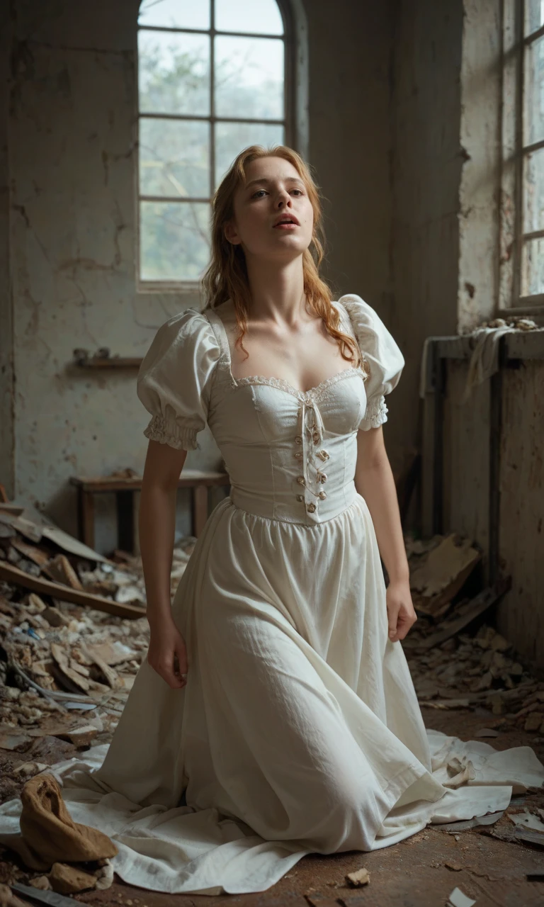 bimbo, extremely beautiful face, rolling eyes, squat, two su...
