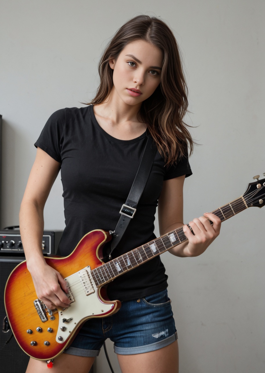 woman with an electric guitar